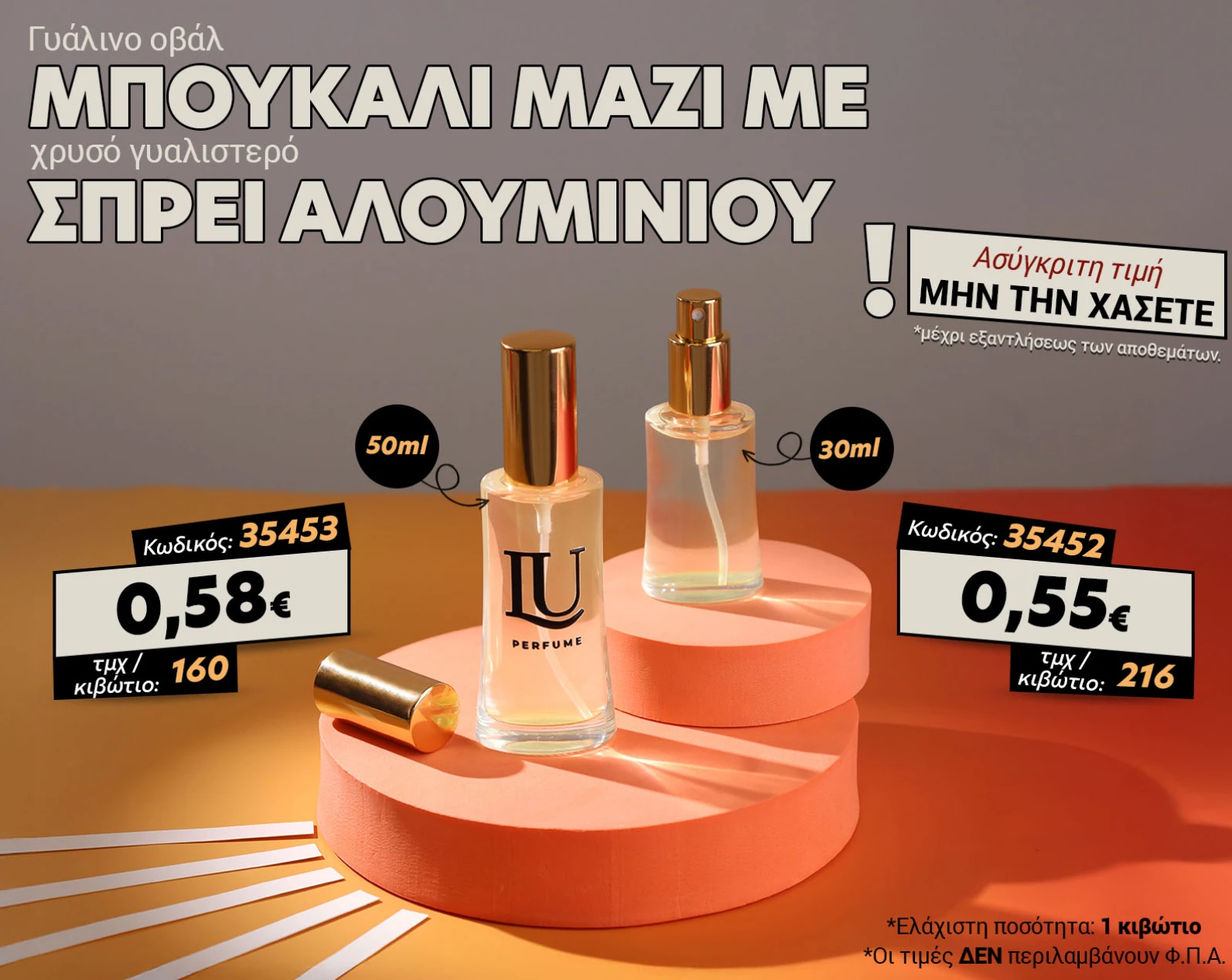 Ανακαλύψτε στο vaza.gr όλα τα απαραίτητα είδη αρωματοπωλείων για να οργανώσετε, εξοπλίσετε και αναδείξετε τα προϊόντα σας με επαγγελματικό τρόπο. Στη συλλογή μας θα βρείτε μπουκαλάκια και φιάλες αρωμάτων σε ποικιλία σχημάτων και χωρητικοτήτων καθώς και φιάλες γυάλινες, κρυστάλλινες, crimp ή μπουκαλάκια αρωματικών χώρου και αυτοκινήτου. Διαθέτουμε ε.. -